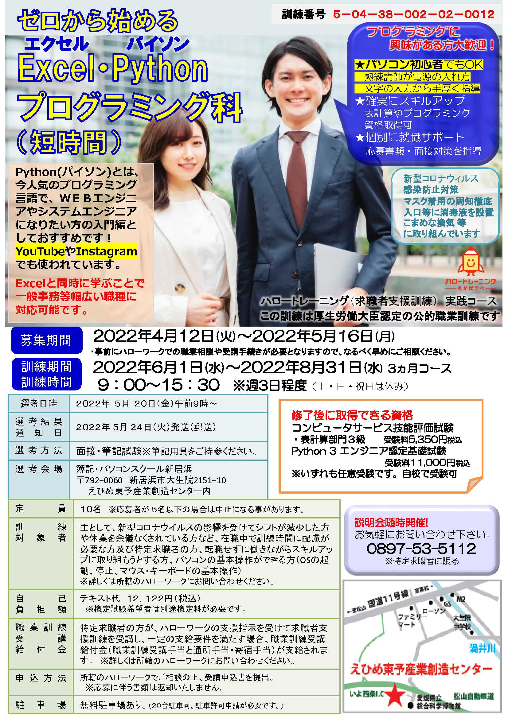 訓練期間:2022年6月1日(水)~2022年8月31日(水) 募集期間:2021年4月12日(火)~2022年5月16日(月)