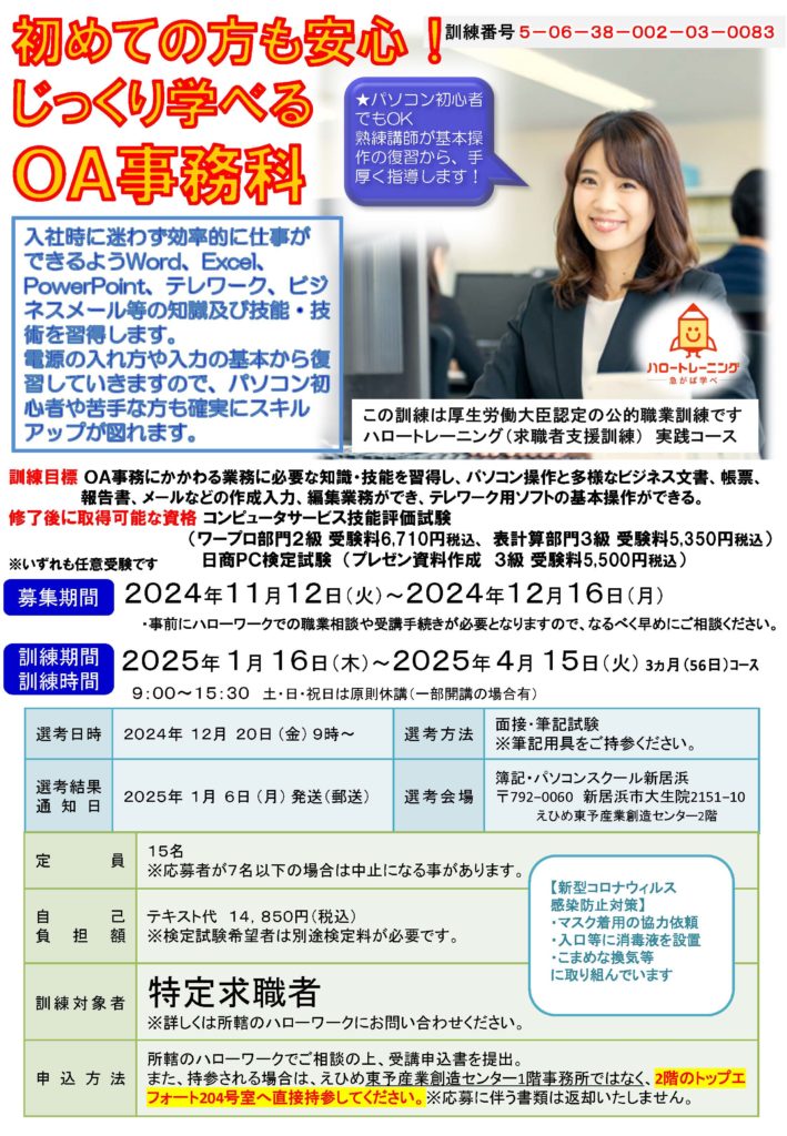 当社で予定されております「ハロートレーニング 求職者支援訓練 実践コース」のご案内です。