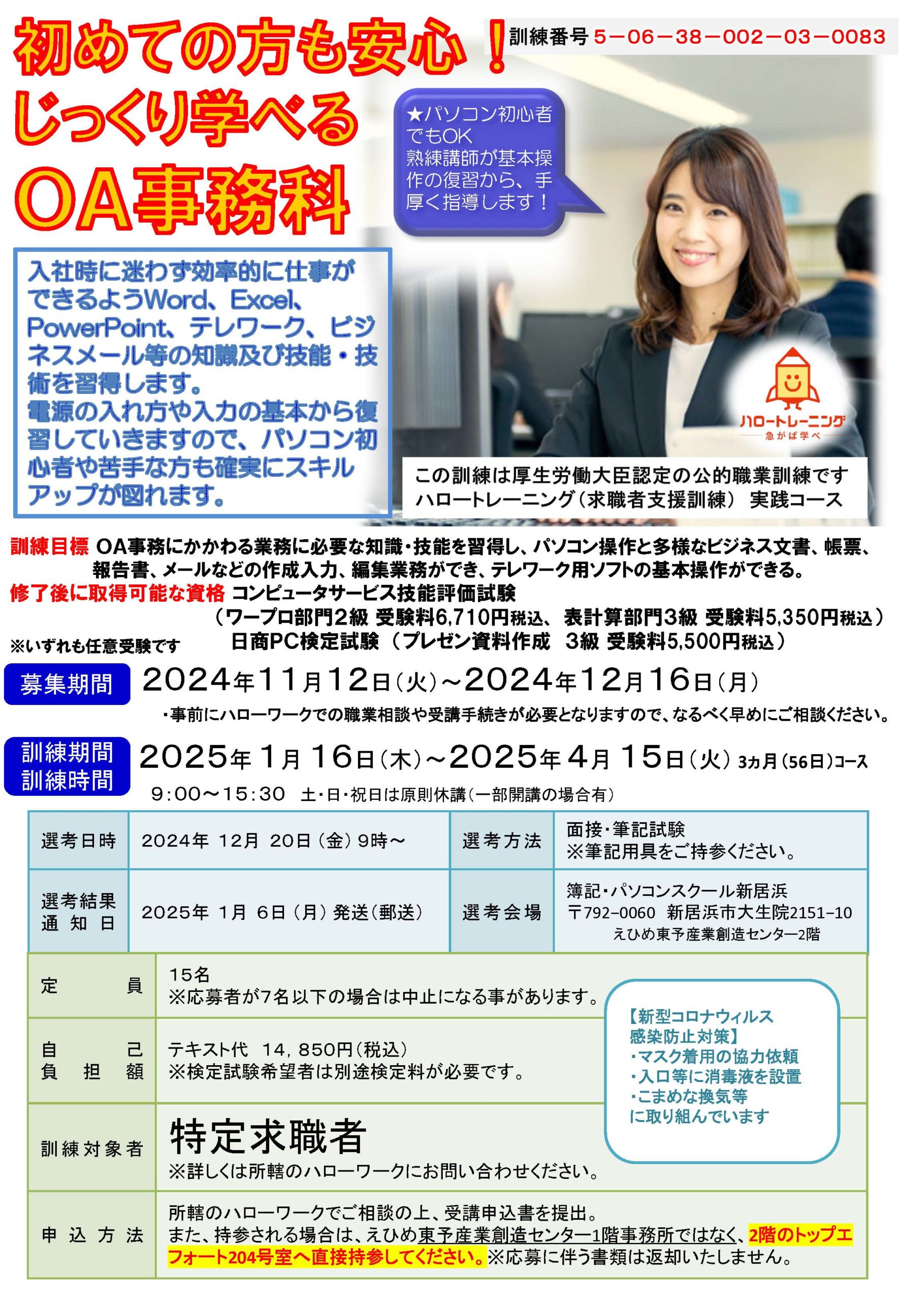 OA事務にかかわる業務に必要な知識・技能を習得し、パソコン操作と多様なビジネス文書、帳票、報告書、メールなどの作成入力、編集業務ができ、テレワーク用ソフトの基本操作ができるコースです。