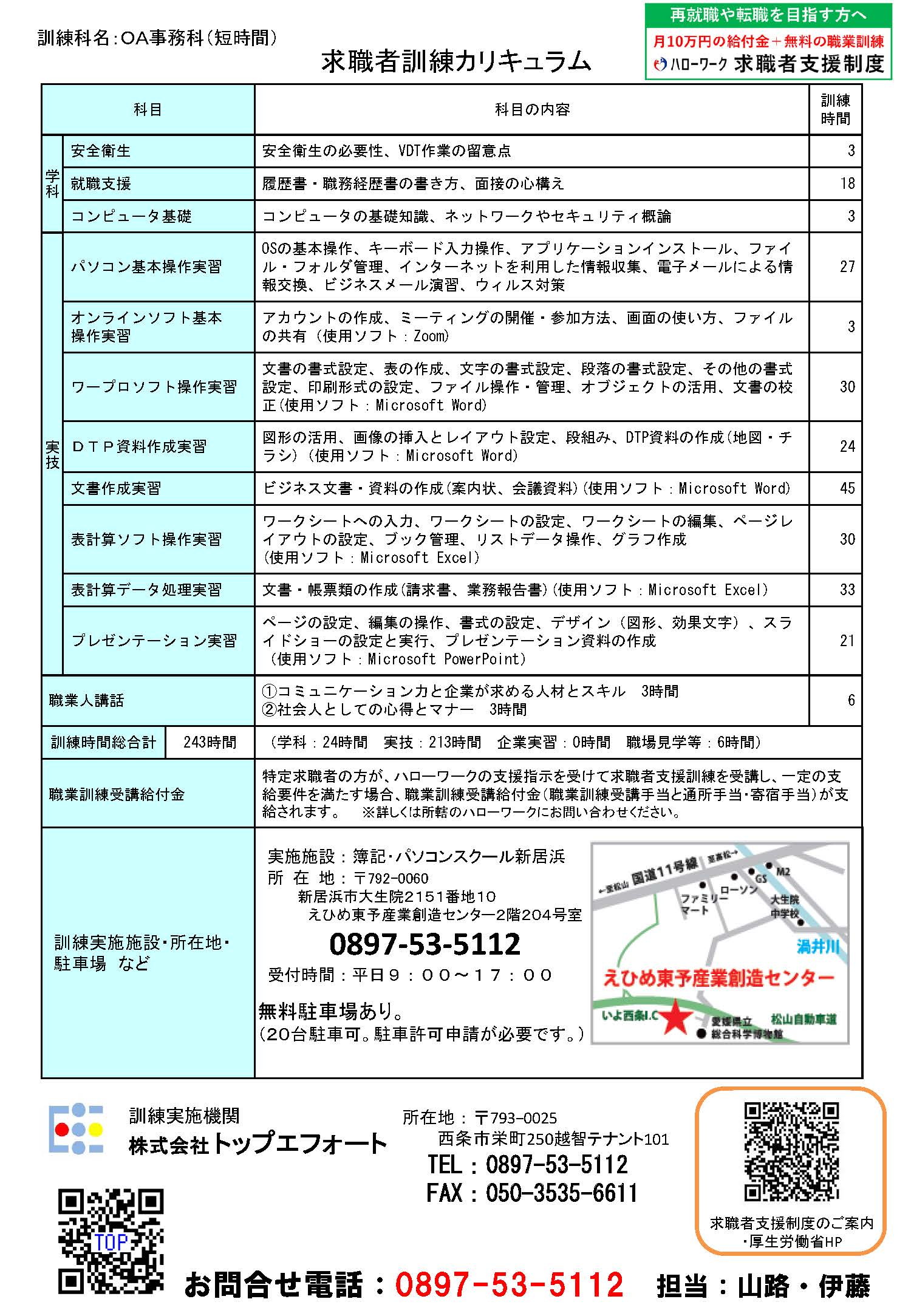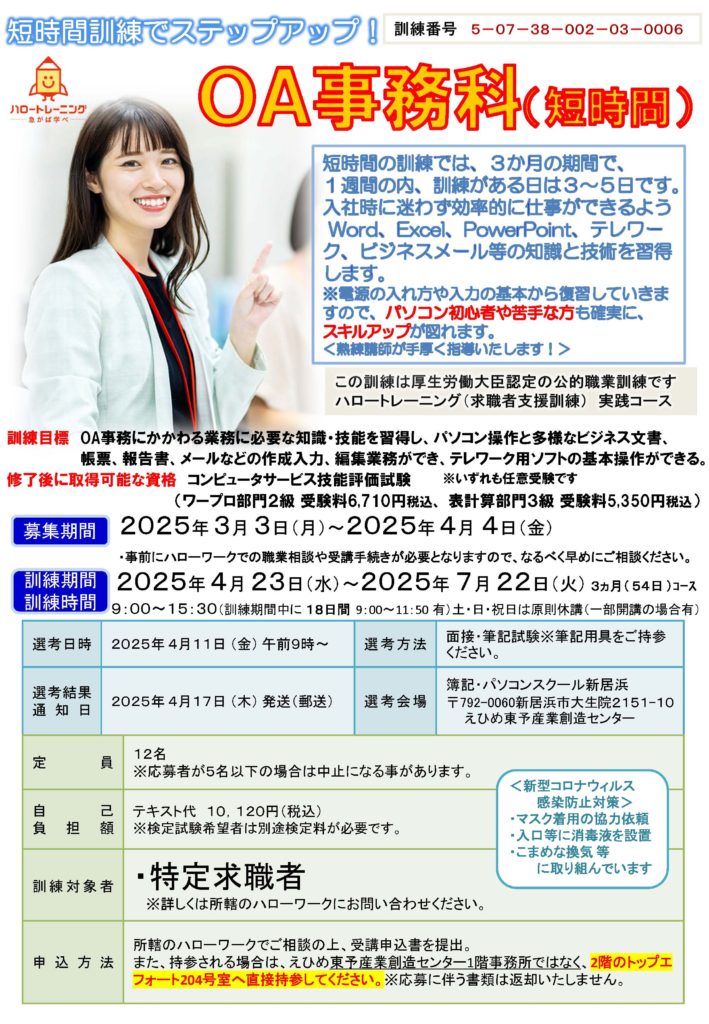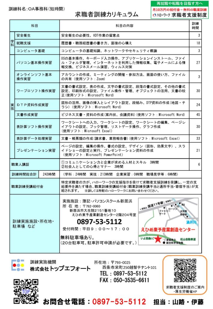 当社で予定されております「ハロートレーニング 求職者支援訓練 実践コース」のご案内です。