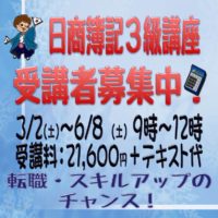 日商簿記3級講座募集のお知らせ!