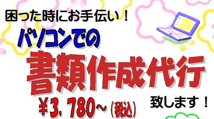 パソコンでの書類作成代行いたします! 書類を代わりに作ってもらいたい方まずはご相談を! ★作成事例 見積書・名刺・チラシ・各種 ビジネス書類 テキスト・年賀状・ 各種お知らせ・ 町内会各種資料・各種申請書類・ポスター 地 …